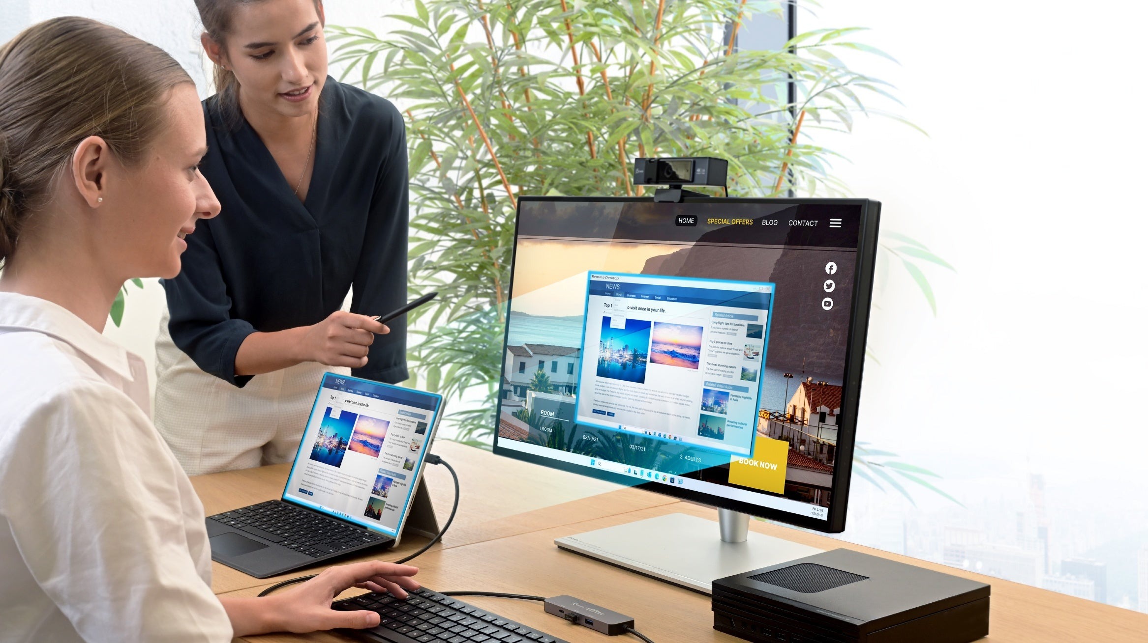 Цей хаб також підтримує спільний доступ до екрана, що дозволяє без зусиль розширювати або дублювати екрани між двома пристроями Windows®. Він також підтримує віртуальний мультитач, жести Windows® і стилус при використанні з планшетом із сенсорним екраном, що підвищує продуктивність і загальний комфорт роботи з сенсорним екраном.