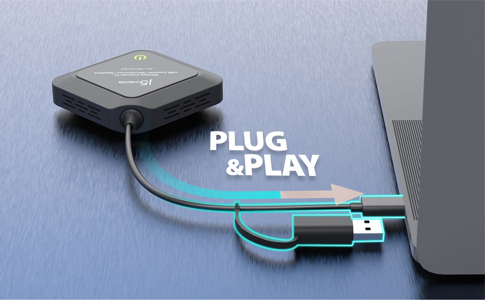 Бездротовий подовжувач j5create для камер USB™ перетворює вашу дротову камеру на бездротову. Завдяки діапазону бездротової передачі до 25 м користувачі можуть розширити діапазон своєї дротової камери USB™ без заплутаних кабелів, незалежно від планування приміщення. Окрім бездротової передачі відео та аудіо, цей компактний і легкий подовжувач для камери працює з пристроями Windows®, macOS® та Chrome OS™, що робить його чудовим доповненням до будь-якої кімнати для нарад, обладнання для стримінгу та інших подібних середовищ.