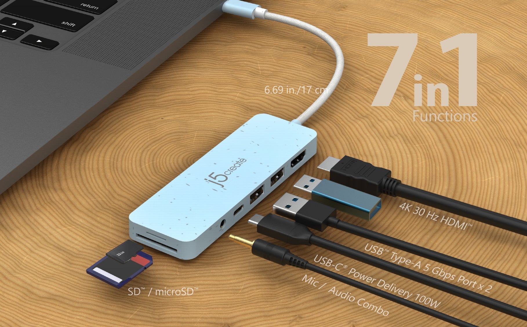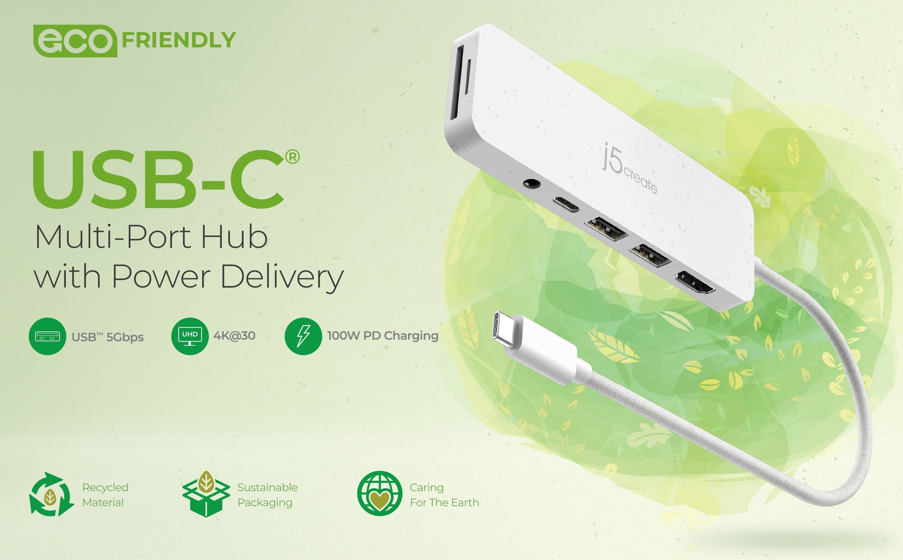- 1 - Екологічний багатопортовий концентратор USB-C® з функцією Power Delivery JCD373E