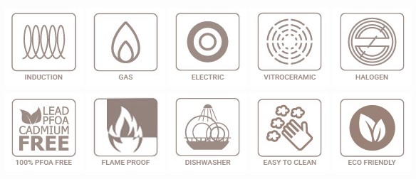 Вироби з колекції Ascella оснащені індукційним дном, що робить їх ідеальними не тільки для індукційних, а й для традиційних газових плит, на яких вони функціонують бездоганно.